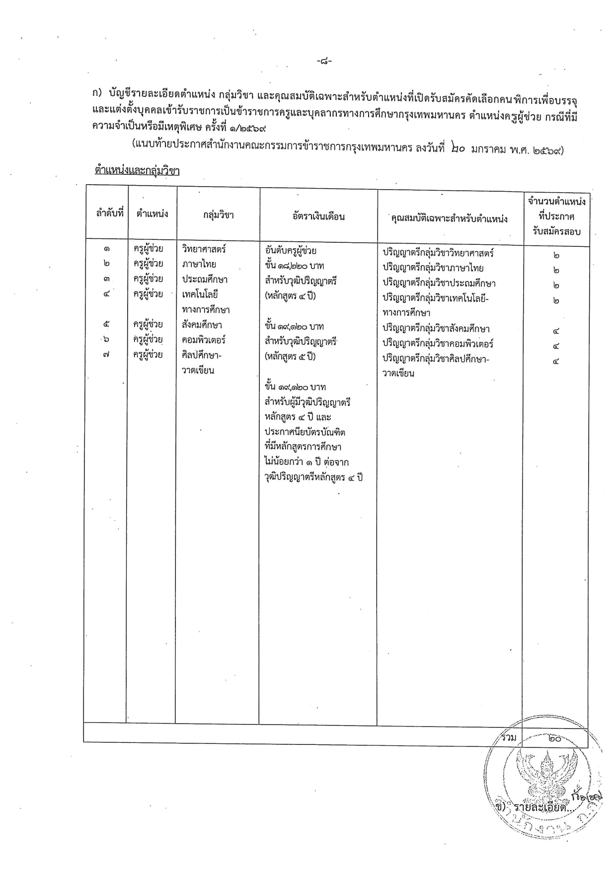 วันศุกร์ที่ 30 เดือนมกราคม พ.ศ.2569 Home (เปิดสอบราชการ) งานราชการ งานรัฐวิสาหกิจ สอบครูผู้ช่วย สอบครูอัตราจ้าง ตำรวจ/ทหาร แนวข้อสอบ ข่าวการศึกษา งานสถานศึกษา ประกาศผลสอบ สาระน่ารู้ 🔍 ล่าสุด : คณะเกษตร มหาวิทยาลัยเกษตรศาสตร์ รับสมัคร พนักงานมหาวิทยาลัย 1 อัตรา เงินเดือน 24,000 บาท ตั้งแต่บัดนี้ถึง 20 มี.ค. 2569 Home สอบครูผู้ช่วย สํานักงานคณะกรรมการข้าราชการกรุงเทพมหานคร รับสมัครสอบข้าราชการครูและบุ.. สํานักงานคณะกรรมการข้าราชการกรุงเทพมหานคร รับสมัครสอบข้าราชการครูและบุคลากร คนพิการ 20 อัตรา เงินเดือน 18,220 - 19,120 บาท ตั้งแต่วันที่ 2-10 ก.พ. 2569 แสดงความคิดเห็น : - กรุณาใช้คำพูดที่สุภาพและไม่ทำให้ผู้อื่นเสื่อมเสีย - ห้ามมิให้ผู้ใดโพดขายสินค้าเด็ดขาด - ข้อความโพสโดยสาธารณชน โปรดใช้วิจารณญาณในการอ่าน ที่เกี่ยวข้อง โรงพยาบาลชุมแพ รับสมัครลูกจ้างชั่วคราวเงินบํารุง (รายวัน) 1 อัตรา ตั้งแต่วันที่ 26 ม.ค. - 20 ก.พ. 2569 21 ม.ค. 2569 เวลา 20:12 น. 2,304 วิทยาลัยแพทยศาสตร์นานาชาติจุฬาภรณ์ มหาวิทยาลัยธรรมศาสตร์ รับสมัคร พนักงานมหาวิทยาลัย 3 อัตรา เงินเดือน 21,250 บาท ตั้งแต่บัดนี้ถึง 3 ก.พ. 2569 25 ม.ค. 2569 เวลา 10:31 น. 806 โรงพยาบาลมหาวิทยาลัยอุบลราชธานี รับสมัครพนักงานมหาวิทยาลัย 1 อัตรา เงินเดือน 24,500 บาท ตั้งแต่บัดนี้ - 2 ก.พ. 2569 20 ม.ค. 2569 เวลา 19:39 น. 3,220 คณะวิจิตรศิลป์ มหาวิทยาลัยเชียงใหม่ รับสมัครพนักงานมหาวิทยาลัย 1 อัตรา เงินเดือน 41,000 บาท ตั้งแต่บัดนี้ - 27 ก.พ. 2569 28 ม.ค. 2569 เวลา 19:08 น. 738 โรงพยาบาลดอนสัก รับสมัครพนักงานจ้างเหมาบริการ (รายเดือน) 1 อัตรา เงินเดือน 18,000 บาท ตั้งเเต่วันที่ 12-30 ม.ค. 2569 10 ม.ค. 2569 เวลา 20:37 น. 802 โรงพยาบาลสวรรค์ประชารักษ์ รับสมัครบุคคลเพื่อเป็นพนักงานราชการทั่วไป 1 อัตรา เงินเดือน 13,660 - 16,700 บาท ตั้งแต่วันที่ 15 - 30 ม.ค. 2569 20 ธ.ค. 2568 เวลา 10:36 น. 1,234 สํานักงานสรรพสามิตพื้นที่สมุทรปราการ 2 รับสมัคร ลูกจ้างชั่วคราว 1 อัตรา เงินเดือน 11,380 บาท ตั้งแต่วันที่ 29 ม.ค. - 6 ก.พ. 2569 26 ม.ค. 2569 เวลา 16:02 น. 181 สํานักงานธนารักษ์พื้นที่กําแพงเพชร รับสมัครลูกจ้างชั่วคราว 1 อัตรา เงินเดือน 9,400 บาท ตั้งแต่วันที่ 19 ม.ค. - 6 ก.พ. 2569 26 ม.ค. 2569 เวลา 15:20 น. 201 กรมฝนหลวงและการบินเกษตร รับสมัครสอบรรจุบุคคลเข้ารับราชการ 8 อัตรา เงินเดือน 13,920- 15,320 บาท ตั้งแต่บัดนี้ - 10 ก.พ. 2569 22 ม.ค. 2569 เวลา 18:29 น. 1,094 กรมอาเซียน รับสมัคร พนักงานโครงการ 1 อัตรา เงินเดือน 15,000บาท ตั้งแต่บัดนี้ถึง 11 ก.พ. 2569 15 ม.ค. 2569 เวลา 13:53 น. 381 โรงพยาบาลชุมพรเขตรอุดมศักดิ์ รับสมัคร ลูกจ้างชั่วคราวเงินบํารุง (รายวัน) หลายอัตรา จ้างวันละ 350 - 400 บาท ตั้งแต่วันที่ 5 ม.ค. - 30 ก.ย. 2569 3 ม.ค. 2569 เวลา 10:56 น. 584 สํานักงานสรรพสามิตภาคที่ 1 รับสมัครพนักงานราชการทั่วไป 1 อัตรา เงินเดือน 13,660 บาท 