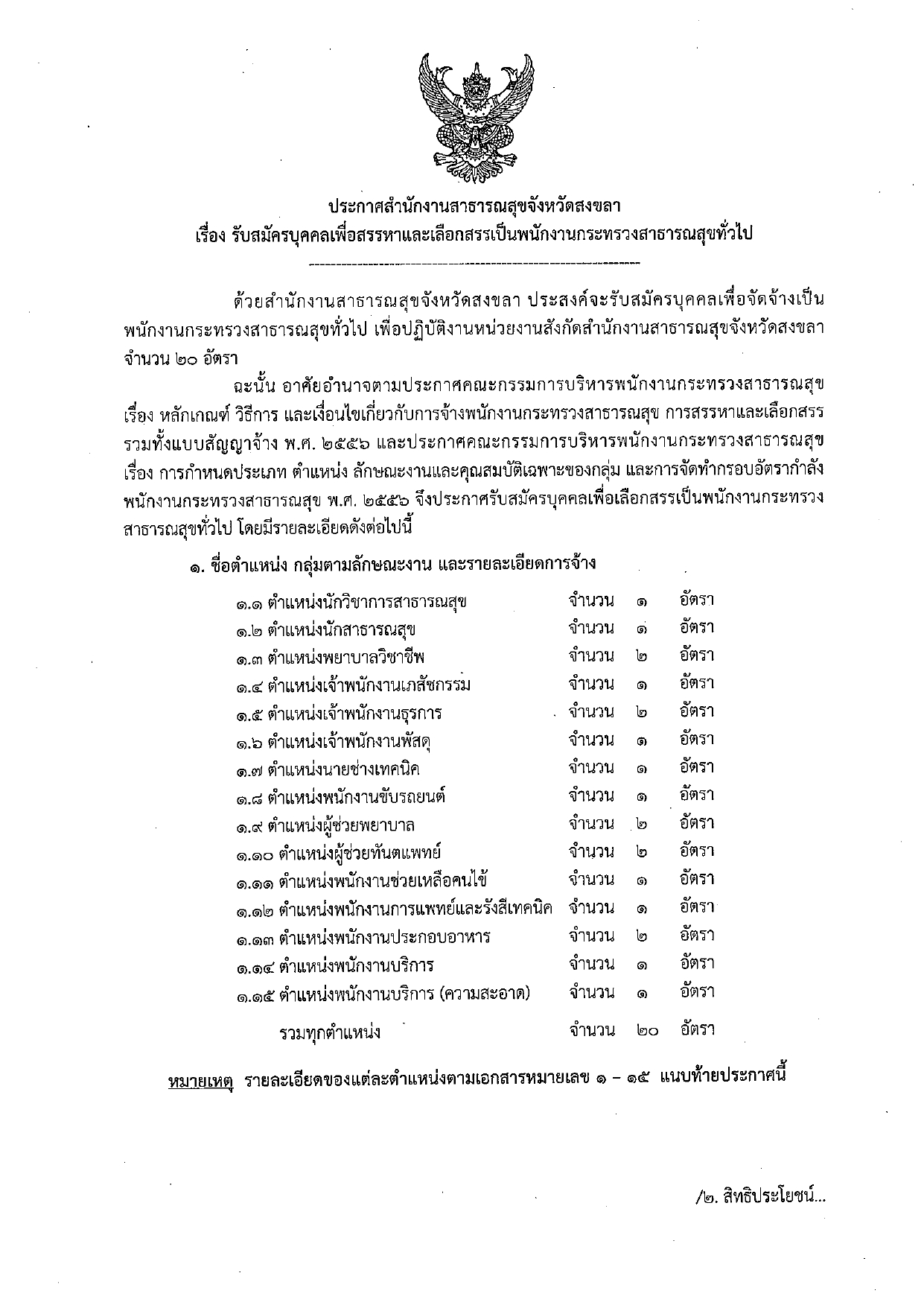 สํานักงานสาธารณสุขจังหวัดสงขลา รับสมัคร พนักงานกระทรวงสาธารณสุขทั่วไป 20 อัตรา ตั้งแต่วันที่ 30มี.ค. - 3 เม.ย. 2569 ที่เกี่ยวข้อง โรงพยาบาลเซกา รับสมัครบุคคลเป็นลูกจ้างชั่วคราว (รายวัน) 5 อัตรา ค่าจ้างวันละ 500 - 783 บาท ตั้งแต่บัดนี้ - 31 มี.ค. 2569 26 มี.ค. 2569 เวลา 07:17 น. 238 สำนักงานคณะกรรมการส่งเสริมการลงทุน รับสมัครบุคคลเข้ารับราชการ 3 อัตรา เงินเดือน 18,150 - 19,970 บาท ตั้งแต่วันที่ 11 - 31 มี.ค. 2569 3 มี.ค. 2569 เวลา 10:06 น. 934 วิทยาลัยการอาชีพพล รับสมัครลูกจ้างชั่วคราว 2 อัตรา เงินเดือน 11,500 บาท ตั้งแต่วันที่ 4-27 มี.ค. 2569 7 มี.ค. 2569 เวลา 10:15 น. 614 โรงพยาบาลบ้านแพ้ว (องค์การมหาชน) รับสมัครบุคคลเข้าปฏิบัติงาน 3 อัตรา เงินเดือน 14,000 บาท ตั้งแต่บัดนี้ - 30 เม.ย. 2569 24 มี.ค. 2569 เวลา 18:32 น. 677 วิทยาลัยการอาชีพท่าแซะ รับสมัครพนักงานราชการทั่วไป 1 อัตรา เงินเดือน 21,780 บาท ตั้งแต่วันที่ 23-27 มี.ค. 2569 16 มี.ค. 2569 เวลา 22:16 น. 2,121 โรงพยาบาลนาตาล รับสมัครพนักงานกระทรวงสาธารณสุขทั่วไป 1 อัตรา เงินเดือน 18,000 บาท ตั้งแต่วันที่ 23 -27 มี.ค. 2569 21 มี.ค. 2569 เวลา 20:53 น. 425 มหาวิทยาลัยราชภัฏนครสวรรค์ รับสมัครบุคคลเป็นลูกจ้างชั่วคราว 1 อัตรา เงินเดือน 18,150 บาท ตั้งแต่บัดนี้ - 31 มี.ค. 2569 24 มี.ค. 2569 เวลา 17:38 น. 1,600 วิทยาลัยเกษตรและเทคโนโลยีขอนแก่น รับสมัครพนักงานราชการทั่วไป 2 อัตรา เงินเดือน 21,780 บาท ตั้งแต่วันที่ 16 - 24 เม.ย. 2569 25 มี.ค. 2569 เวลา 18:27 น. 2,463 โรงพยาบาลสมเด็จพระยุพราชกระนวน รับสมัครพนักงานกระทรวงสาธารณสุขทั่วไป 1 อัตรา ตั้งแต่วันที่ 1-21 เม.ย.2569 20 มี.ค. 2569 เวลา 22:51 น. 386 โรงเรียนเทศบาล 5 เด่นห้า รับสมัครครูผู้สอน 2 อัตรา เงินเดือน 12,000 บาท ตั้งแต่วันที่ 16-27 มี.ค. 2569 16 มี.ค. 2569 เวลา 20:31 น. 1,386 กรมทางหลวง รับสมัคร บุคคลเข้ารับราชการ 14 อัตรา เงินเดือน 18,150 - 19,970 บาท ตั้งแต่วันที่ 16 มี.ค. - 3 เม.ย. 2569 5 มี.ค. 2569 เวลา 13:48 น. 24,283 โรงพยาบาลกงไกรลาศ รับสมัครพนักงานกระทรวงสาธารณสุขทั่วไป 3 อัตรา เงินเดือน 8,690 - 18,000 บาท ตั้งแต่วันที่ 23-27 มี.ค. 2569 21 มี.ค. 2569 เวลา 21:29 น. 845