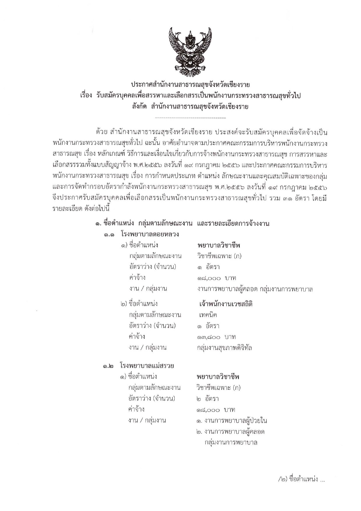 สํานักงานสาธารณสุขจังหวัดเชียงราย รับสมัคร พนักงานกระทรวงสาธารณสุขทั่วไป 31 อัตรา เงินเดือน 8,690 - 18,000 บาท ตั้งแต่วันที่ 29 ธ.ค. - 7 ม.ค. 2569 แสดงความคิดเห็น : - กรุณาใช้คำพูดที่สุภาพและไม่ทำให้ผู้อื่นเสื่อมเสีย - ห้ามมิให้ผู้ใดโพดขายสินค้าเด็ดขาด - ข้อความโพสโดยสาธารณชน โปรดใช้วิจารณญาณในการอ่าน ที่เกี่ยวข้อง มหาวิทยาลัยราชภัฏอุบลราชธานี รับสมัครพนักงานราชการทั่วไป 1 อัตรา เงินเดือน 21,780 บาท ตั้งแต่วันที่ 6-16 ม.ค. 2569 8 ม.ค. 2569 เวลา 15:57 น. 2,029 โรงพยาบาลมะเร็งอุบลราชธานี รับสมัคร ตําแหน่งนักวิชาการสาธารณสุข 1 อัตรา ตั้งแต่วันที่ 7-27 ม.ค. 2569 9 ม.ค. 2569 เวลา 10:02 น. 485 สํานักงานสาธารณสุขอําเภอหัวไทร รับสมัคร ลูกจ้างชั่วคราว (รายวัน) 1 อัตรา เงินเดือน7,470- 9,030 บาท ตั้งแต่วันที่ 12-16 ม.ค. 2569 12 ม.ค. 2569 เวลา 12:40 น. 256 โรงพยาบาลนาวังเฉลิมพระเกียรติ 80 พรรษา รับสมัคร ลูกจ้างชั่วคราวรายเดือน 2 อัตรา เงินเดือน 11,900 บาท ตั้งแต่วันที่ 12 - 16 ม.ค. 2569 12 ม.ค. 2569 เวลา 12:34 น. 164 กรมชลประทาน รับสมัคร พนักงานราชการทั่วไป (คนพิการ) 2 อัตรา เงินเดือน 13,660 บาท ตั้งแต่วันที่ 19-23 ม.ค. 2569 31 ธ.ค. 2568 เวลา 15:30 น. 2,563 คณะเศรษฐศาสตร์ จุฬาลงกรณ์มหาวิทยาลัย รับสมัครพนักงานมหาวิทยาลัย 2 อัตรา เงินเดือน 41,000 - 56,400 บาท ตั้งแต่บัดนี้ - 19 ม.ค. 2569 26 ธ.ค. 2568 เวลา 15:50 น. 2,520 สํานักงานสาธารณสุขจังหวัดบุรีรัมย์ รับสมัครบุคคลเข้ารับราชการ 4 อัตรา เงินเดือน 18,150 - 19,970 บาท ตั้งแต่วันที่ 12 - 16 ม.ค. 2569 10 ม.ค. 2569 เวลา 18:03 น. 2,700 มหาวิทยาลัยราชภัฏจันทรเกษม รับสมัครบุคคลเข้ารับราชการ 14 อัตรา เงินเดือน 26,250 - 31,500 บาท ตั้งแต่บัดนี้ - 16 ม.ค. 2569 20 ธ.ค. 2568 เวลา 11:18 น. 4,037 รพ.ค่ายสมเด็จพระนเรศวรมหาราช รับสมัคร ผู้ช่วยเภสัชกร 1 อัตรา เงินเดือน 7,630 บาท ตั้งแต่วันที่ 30 ธ.ค. 2568 - 19 ม.ค. 2569 2 ม.ค. 2569 เวลา 11:03 น. 220 โรงพยาบาลลำพูน รับสมัครลูกจ้างชั่วคราว (รายวัน) 1 อัตรา ตั้งแต่บัดนี้ - 16 ม.ค. 2569 7 ม.ค. 2569 เวลา 10:07 น. 767 ที่ทําการปกครองจังหวัดแพร่ รับสมัคร เจ้าหน้าที่ปกครอง 2 อัตรา ตั้งแต่วันที่ 7-16 ม.ค. 2569 30 ธ.ค. 2568 เวลา 11:21 น. 1,922 กรมท่าอากาศยาน รับสมัคร ตําแหน่งนักวิชาการพัสดุ 1 อัตรา เงินเดือน 15,000บาท ตั้งแต่วันที่ 12-27 ม.ค. 2569 14 ม.ค. 2569 เวลา 16:43 น. 155