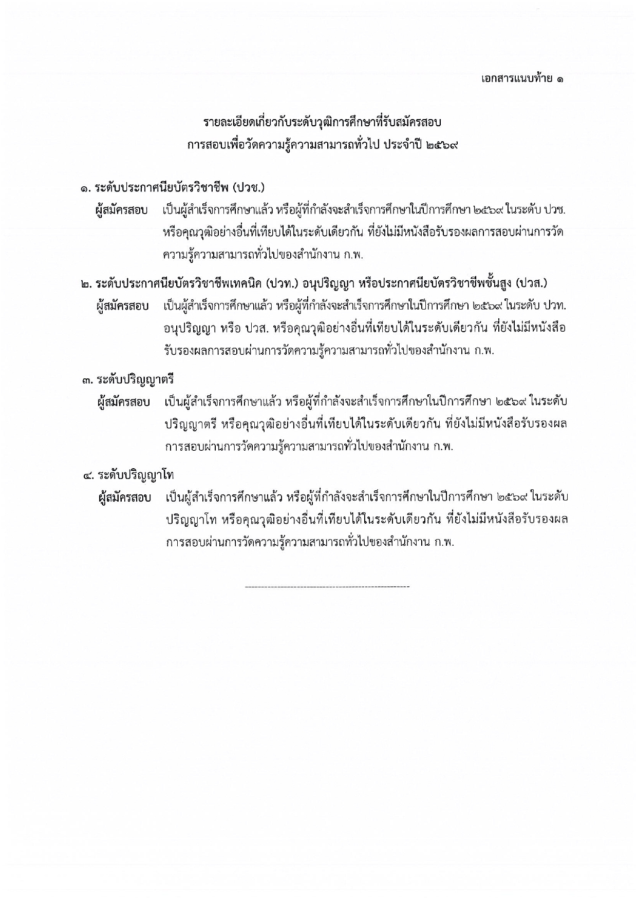 สํานักงาน ก.พ. ประกาศรับสมัครสอบภาค ก. (paper & pencil) จำนวน 450,000 ที่นั่งสอบ ตั้งแต่วันที่ 14 ม.ค. - 3 ก.พ. 2569 แสดงความคิดเห็น : - กรุณาใช้คำพูดที่สุภาพและไม่ทำให้ผู้อื่นเสื่อมเสีย - ห้ามมิให้ผู้ใดโพดขายสินค้าเด็ดขาด - ข้อความโพสโดยสาธารณชน โปรดใช้วิจารณญาณในการอ่าน ที่เกี่ยวข้อง มหาวิทยาลัยมหาสารคาม รับสมัคร ลูกจ้างชั่วคราว 21 อัตรา เงินเดือน 9,560 - 17,380 บาท ตั้งแต่บัดนี้ถึง 30 ม.ค. 2569 12 ม.ค. 2569 เวลา 21:20 น. 882 หน่วยบัญชาการทหารพัฒนา รับสมัครบุคคลเป็นพนักงานราชการ 20 อัตรา เงินเดือน 12,630 - 16,700 บาท ตั้งแต่บัดนี้ - 16 ม.ค. 2569 13 ม.ค. 2569 เวลา 18:20 น. 2,136 โรงพยาบาลลำพูน รับสมัครลูกจ้างชั่วคราว (รายวัน) 1 อัตรา ตั้งแต่บัดนี้ - 16 ม.ค. 2569 7 ม.ค. 2569 เวลา 10:07 น. 767 โรงพยาบาลจุฬาลงกรณ์ รับสมัครบุคลากรสัญญาจ้าง ตำแหน่งผู้จัดการ 1 อัตรา เงินเดือน 25,000 บาท ตั้งแต่บัดนี้ - 21 ม.ค. 2569 7 ม.ค. 2569 เวลา 09:56 น. 1,348 สถาบันกัลยาณ์ราชนครินทร์ รับสมัครบุคคลเป็นพนักงานราชการทั่วไป 1 อัตรา เงินเดือน 27,540 บาท ตั้งแต่วันที่ 22 ม.ค. - 27 ก.พ. 2569 15 ม.ค. 2569 เวลา 20:00 น. 747 โรงพยาบาลพระนครศรีอยุธยา รับสมัครลูกจ้างชั่วคราว(รายวัน) 1 อัตรา ตั้งแต่วันที่ 13 ม.ค. - 13 ก.พ. 2569 9 ม.ค. 2569 เวลา 19:18 น. 1,390 ราชวิทยาลัยจุฬาภรณ์ รับสมัครพนักงานสัญญาจ้าง 8 อัตรา เงินเดือน 18,000 บาท ตั้งแต่บัดนี้เป็นนต้นไป 3 ม.ค. 2569 เวลา 18:57 น. 1,224 ที่ทําการปกครองจังหวัดแพร่ รับสมัคร เจ้าหน้าที่ปกครอง 2 อัตรา ตั้งแต่วันที่ 7-16 ม.ค. 2569 30 ธ.ค. 2568 เวลา 11:21 น. 1,923 โรงพยาบาลลำพูน รับสมัครบุคคลเพื่อสรรหาลูกจ้างชั่วคราว (รายวัน) 1 อัตรา ตั้งแต่วันที่ 12 - 20 ม.ค. 2569 8 ม.ค. 2569 เวลา 20:46 น. 1,639 โรงพยาบาลหนองหาน รับสมัคร ลูกจ้างชั่วคราวรายวัน 19 อัตรา จ้างวันละ 378 - 800 บาท ตั้งแต่วันที่ 13-22 ม.ค. 2569 11 ม.ค. 2569 เวลา 12:06 น. 274 โรงพยาบาลธรรมศาสตร์เฉลิมพระเกียรติ รับสมัครบุคคลเป็นพนักงาน 3 อัตรา เงินเดือน 10,360 - 21,250 บาท ตั้งแต่วันที่ 15 - 29 ม.ค. 2569 14 ม.ค. 2569 เวลา 19:54 น. 1,379 เทศบาลเมืองท่าช้าง รับสมัครบุคคลเป็นพนักงานจ้าง 3 อัตรา เงินเดือน 9,000 บาท ตั้งแต่วันที่ 12 - 20 ม.ค. 2569 10 ม.ค. 2569 เวลา 17:48 น. 253