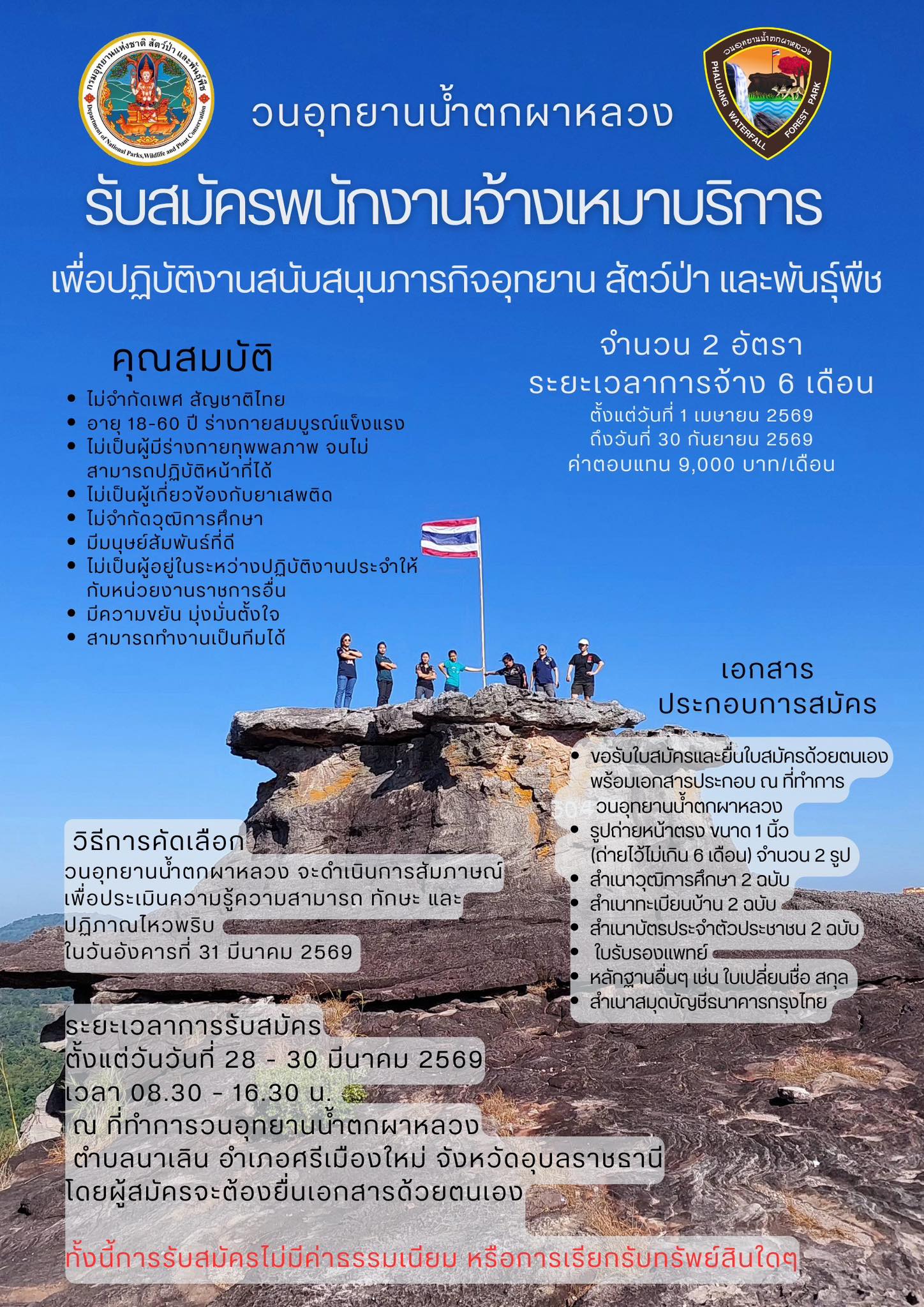 อุทยานน้ำตกผาหลวง รับสมัครจ้างเหมาบริการ 2 อัตรา เงินเดือน 9,000 บาท ตั้งแต่วันที่ 28 - 30 มี.ค. 2569 ที่เกี่ยวข้อง คณะบริหารธุรกิจและการบัญชี มหาวิทยาลัยขอนแก่น รับสมัครพนักงานมหาวิทยาลัย 1 อัตรา เงินเดือน 37,900 - 41,000 บาท ตั้งแต่วันที่ 30 มี.ค. - 30 มิ.ย. 2569 14 เม.ย. 2569 เวลา 22:58 น. 534 เทศบาลนครเชียงใหม่ รับสมัครสรรหาและเลือกสรรพนักงานจ้าง 4 อัตรา เงินเดือน 9,000 - 9,400 บาท ตั้งแต่วันที่ 21 - 30 เม.ย. 2569 9 เม.ย. 2569 เวลา 19:54 น. 1,556 คณะวิศวกรรมศาสตร์ จุฬาลงกรณ์มหาวิทยาลัย รับสมัครพนักงานมหาวิทยาลัย 1 อัตรา เงินเดือน 19,500 บาท ตั้งแต่บัดนี้ - 23 เม.ย. 2569 14 เม.ย. 2569 เวลา 22:18 น. 2,827 โรงเรียนเบญจมราชาลัย ในพระบรมราชูปถัมภ์ รับสมัครตำแหน่ง เจ้าหน้าที่บรรณารักษ์ 1 อัตรา เงินเดือน 15,000 บาท ตั้งแต่วันที่ 3-23 เม.ย. 2569 13 เม.ย. 2569 เวลา 22:51 น. 413 สํานักการแพทย์ รับสมัคร พนักงานประกันสังคม 2 อัตรา เงินเดือน 17,250 บาท ตั้งแต่วันที่ 17 เม.ย.- 8พ.ค. 2569 10 เม.ย. 2569 เวลา 16:26 น. 614 โรงเรียนอนุบาลภูเก็ต รับสมัครลูกจ้างชั่วคราวและครูอัตราจ้าง 7 อัตรา เงินเดือน 9,500 - 15,000 บาท ตั้งแต่บัดนี้ - 5 พ.ค. 2569 7 เม.ย. 2569 เวลา 19:29 น. 3,182 ท่าอากาศยานระนอง รับสมัครบุคคลเป็นลูกจ้างทุนหมุนเวียน 4 อัตรา เงินเดือน 11,500 บาท ตั้งแต่วันที่ 20 เม.ย. - 11 พ.ค. 2569 16 เม.ย. 2569 เวลา 18:53 น. 934 สำนักงานสถิติจังหวัดนครราชสีมา รับสมัครลูกจ้างเหมาบริการ 1 อัตรา เงินเดือน 15,000 บาท ตั้งเเต่บัดนี้-24 เม.ย. 2569 17 เม.ย. 2569 เวลา 16:48 น. 933 โรงเรียนจอมทอง รับสมัครเป็นลูกจ้างชั่วคราว 1 อัตรา เงินเดือน 13,500 บาท ตั้งเเต่บัดนี้-23 เม.ย. 2569 17 เม.ย. 2569 เวลา 16:06 น. 714 ท่าอากาศยานสุราษฎร์ธานี รับสมัครลูกจ้างทุนหมุนเวียน 3 อัตรา เงินเดือน 11,500 บาท ตั้งแต่วันที่ 8-27 เม.ย. 2569 9 เม.ย. 2569 เวลา 12:12 น. 1,238 โรงพยาบาลนราธิวาสราชนครินทร์ รับสมัครพนักงานกระทรวงสาธารณสุขทั่วไป 2 อัตรา เงินเดือน 9,400 - 18,000 บาท ตั้งแต่วันที่ 22-28 เม.ย. 2569 12 เม.ย. 2569 เวลา 14:05 น. 803 โรงพยาบาลสมเด็จพระยุพราชกุฉินารายณ์ รับสมัครลูกจ้างชั่วคราวรายวัน 2 อัตรา ค่าจ้างวันละ 1,160 บาท ตั้งแต่วันที่ 7 เม.ย. เป็นต้นไป 6 เม.ย. 2569 เวลา 09:33 น. 2,487