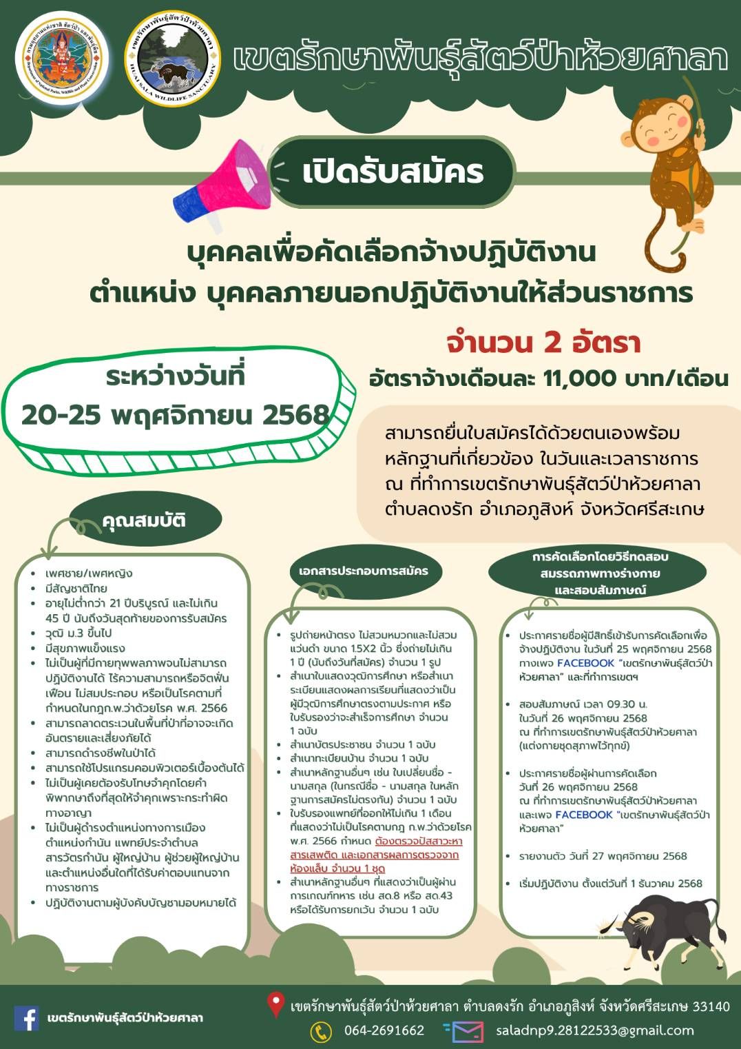 เขตรักษาพันธุ์สัตว์ป่าห้วยศาลา รับสมัคร บุคคลเพื่อคัดเลือกจ้างปฏิบัติงาน 2 อัตรา เงินเดือน 11,000 บาท ตั้งแต่วันที่ 20-25 พ.ย. 2568 แสดงความคิดเห็น : - กรุณาใช้คำพูดที่สุภาพและไม่ทำให้ผู้อื่นเสื่อมเสีย - ห้ามมิให้ผู้ใดโพดขายสินค้าเด็ดขาด - ข้อความโพสโดยสาธารณชน โปรดใช้วิจารณญาณในการอ่าน ที่เกี่ยวข้อง กรมปศุสัตว์ รับสมัครบรรจุเข้ารับราชการ 86 อัตรา เงินเดือน 13,920 -24,010 บาท ตั้งแต่วันที่ 10-28 พ.ย. 2568 9 พ.ย. 2568 เวลา 19:37 น. 3,137 กองต่อต้านการค้ามนุษย์ รับสมัครบุคคลจ้างเหมาบุคคลภายนอก 1 อัตรา เงินเดือน 20,000 บาท ตั้งแต่บัดนี้ - 3 ธ.ค. 2568 19 พ.ย. 2568 เวลา 18:39 น. 1,019 ศูนย์วิจัยและพัฒนาการเพาะเลี้ยงสัตว์น้ำชายฝั่งกระบี่ รับสมัครพนักงานราชการทั่วไป 2 อัตรา เงินเดือน 12,630 บาท ตั้งแต่วันที่ 19 - 27 พ.ย. 2568 12 พ.ย. 2568 เวลา 18:40 น. 2,349 โรงพยาบาลสันกําแพง รับสมัคร ลูกจ้างชั่วคราว (รายวัน) 3 อัตรา ค่าจ้างวันละ 790 บาท ตั้งแต่วันที่ 10 พ.ย. 4 ธ.ค. 2568 18 พ.ย. 2568 เวลา 11:01 น. 304 ศูนย์ป้องกันและปราบปรามประมงน้ำจืดสุราษฎร์ธานี รับสมัครบุคคลเป็นพนักงานราชการ 1 อัตรา เงินเดือน 13,660 บาท ตั้งแต่วันที่ 18 - 26 พ.ย. 2568 11 พ.ย. 2568 เวลา 18:54 น. 1,702 โรงพยาบาลมะเร็งอุบลราชธานี รับสมัคร ลูกจ้างรายคาบ 1 อัตรา ตั้งแต่วันที่ 24 พ.ย. - 4 ธ.ค. 2568 23 พ.ย. 2568 เวลา 20:30 น. 38 โรงพยาบาลรัตนประชารักษ์ รับสมัคร บุคคลภายนอกช่วยปฏิบัติราชการ 11 อัตรา ตั้งแต่บัดนี้ถึง 3 ธ.ค. 2568 22 พ.ย. 2568 เวลา 10:01 น. 87 โรงพยาบาลบ้านแพ้ว (องค์การมหาชน) รับสมัครบุคคลเข้าปฏิบัติงาน 1 อัตรา ตั้งแต่บัดนี้ - 30 พ.ย. 2568 16 พ.ย. 2568 เวลา 19:20 น. 956 สํานักงานเขตพื้นที่การศึกษามัธยมศึกษานครปฐม รับสมัคร พนักงานราชการทั่วไป 1 อัตรา เงินเดือน 21,780 บาท ตั้งแต่วันที่ 21-27 พ.ย. 2568 21 พ.ย. 2568 เวลา 12:59 น. 531 สํานักงานเขตปทุมวัน รับสมัคร ลูกจ้างชั่วคราว 26 อัตรา เงินเดือน 8,690-9,400บาท ตั้งแต่วันที่ 17 พ.ย. - 12 ธ.ค. 2568 13 พ.ย. 2568 เวลา 11:12 น. 465 สํานักงาน กปร. รับสมัครพนักงานราชการทั่วไป 4 อัตรา เงินเดือน 13,600 - 21,780 บาท ตั้งแต่วันที่ 10 - 28 พ.ย. 2568 1 พ.ย. 2568 เวลา 16:28 น. 3,403 โรงเรียนไผ่งามพิทยาคม รับสมัคร ครูอัตราจ้าง 1 อัตรา เงินเดือน 9,000 บาท ตั้งแต่วันที่ 21-25 พ.ย. 2568 18 พ.ย. 2568 เวลา 11:11 น. 284