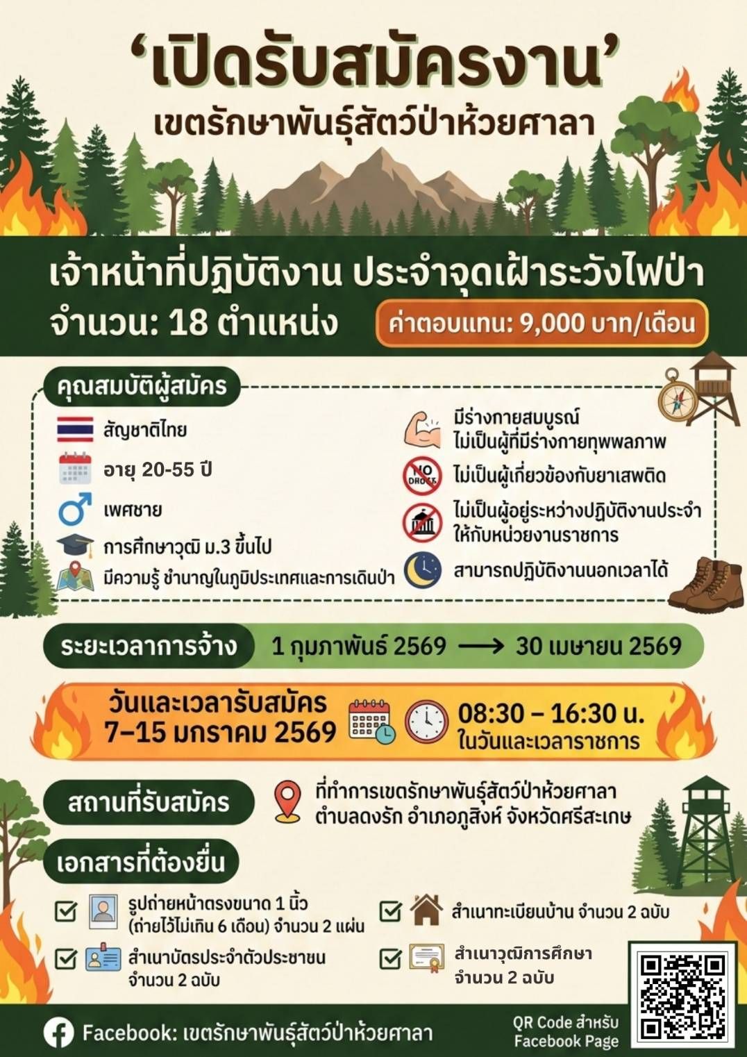 เขตรักษาพันธุ์สัตว์ป่าห้วยศาลา รับสมัคร พนักงานจ้างเหมาบริการ (TOR) 18 อัตรา เงินเดือน 9,000 บาท ตั้งแต่วันที่ 7-15 ม.ค. 2569 แสดงความคิดเห็น : - กรุณาใช้คำพูดที่สุภาพและไม่ทำให้ผู้อื่นเสื่อมเสีย - ห้ามมิให้ผู้ใดโพดขายสินค้าเด็ดขาด - ข้อความโพสโดยสาธารณชน โปรดใช้วิจารณญาณในการอ่าน ที่เกี่ยวข้อง กรมท่าอากาศยาน รับสมัคร ตําแหน่งนักวิชาการพัสดุ 1 อัตรา เงินเดือน 15,000บาท ตั้งแต่วันที่ 12-27 ม.ค. 2569 14 ม.ค. 2569 เวลา 16:43 น. 158 มหาวิทยาลัยทักษิณ วิทยาเขตพัทลุง รับสมัครลูกจ้างของมหาวิทยาลัย 1 อัตรา เงินเดือน 15,700 บาท ตั้งแต่บัดนี้ - 20 ม.ค. 2569 8 ม.ค. 2569 เวลา 20:42 น. 1,806 มหาวิทยาลัยราชภัฏรำไพพรรณี รับสมัครเป็นพนักงานวิทยาลัย 1 อัตรา เงินเดือน 18,000 บาท ตั้งเเต่บัดนี้-23 ม.ค. 2569 5 ม.ค. 2569 เวลา 15:36 น. 1,343 โรงพยาบาลอํานาจเจริญ รับสมัครบุคคลเข้ารับราชการ 1 อัตรา เงินเดือน 25,410 - 28,780 บาท ตั้งแต่วันที่ 12 - 16 ม.ค. 2569 10 ม.ค. 2569 เวลา 17:55 น. 2,334 สำนักงานสาธารณสุขจังหวัดนครสวรรค์ รับสมัครพนักงานราชการทั่วไป 1 อัตรา เงินเดือน 13,660 - 16,700 บาท ตั้งแต่วันที่ 15 - 30 ม.ค. 2569 9 ธ.ค. 2568 เวลา 18:38 น. 4,956 มูลนิธิส่งเสริมศิลปาชีพ ในสมเด็จพระนางเจ้าสิริกิติ์ พระบรมราชินีนาถ รับสมัครบุคคลเข้าทำงาน 2 อัตรา ตั้งแต่บัดนี้ - 31 ม.ค. 2569 23 ธ.ค. 2568 เวลา 19:22 น. 1,599 สำนักงานปลัดกระทรวงพลังงาน รับสมัครบุคคลเข้ารับราชการ 6 อัตรา เงินเดือน 13,920 - 19,970 บาท ตั้งแต่วันที่ 12 - 31 ม.ค. 2569 22 ธ.ค. 2568 เวลา 18:12 น. 5,580 สํานักงานสาธารณสุขจังหวัดบุรีรัมย์ รับสมัครบุคคลเข้ารับราชการ 4 อัตรา เงินเดือน 18,150 - 19,970 บาท ตั้งแต่วันที่ 12 - 16 ม.ค. 2569 10 ม.ค. 2569 เวลา 18:03 น. 2,706 กรมอู่ทหารเรือ รับสมัครบุคคลพลเรือนเป็นพนักงานราชการ 39 อัตรา ตั้งแต่วันที่ 20 - 26 ม.ค. 2569 14 ม.ค. 2569 เวลา 18:58 น. 1,097 เรือนจํากลางนครปฐม รับสมัคร พนักงานราชการ 3 อัตรา เงินเดือน 13,660 - 21,780 บาท ตั้งแต่วันที่ 12-23 ม.ค. 2569 1 ม.ค. 2569 เวลา 11:30 น. 623 โรงพยาบาลมะเร็งชลบุรี รับสมัครพนักงานกระทรวงสาธารณสุขทั่วไป 2 อัตรา เงินเดือน 11,500 บาท ตั้งแต่วันที่ 12 - 23 ม.ค. 2569 11 ม.ค. 2569 เวลา 19:40 น. 377 สํานักงานสาธารณสุขจังหวัดกระบี่ รับสมัคร พนักงานกระทรวงสาธารณสุขทั่วไป 12 อัตรา เงินเดือน 11,500 - 18,000 บาท ตั้งแต่วันที่ 14-20 ม.ค. 2569 9 ม.ค. 2569 เวลา 13:07 น. 1,218