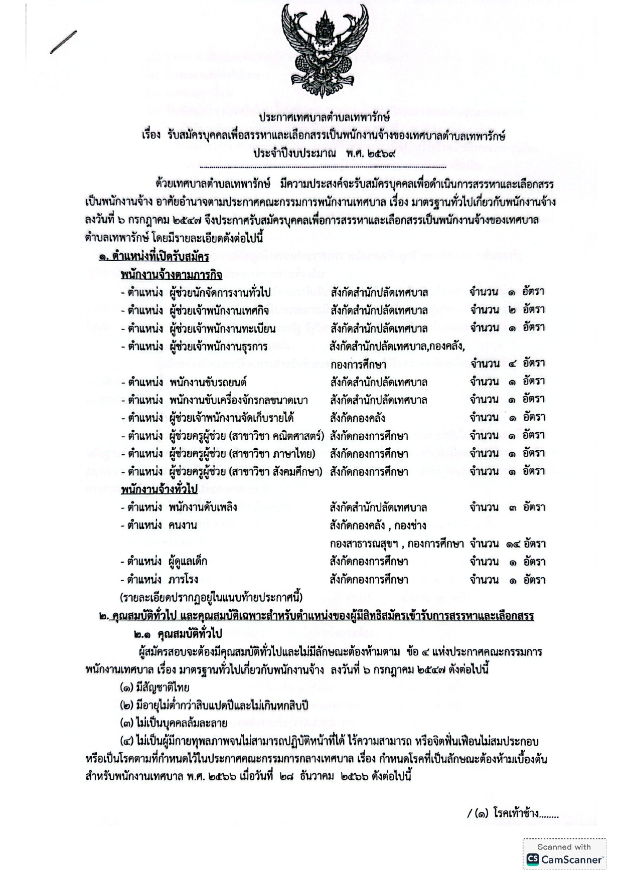 เทศบาลตำบลเทพารักษ์ รับสมัครพนักงานจ้าง 33 อัตรา ตั้งแต่วันที่ 16-24 เม.ย. 2569 ที่เกี่ยวข้อง มหาวิทยาลัยเทคโนโลยีราชมงคลพระนคร รับสมัครบุคคลเพื่อเป็นลูกจ้างชั่วคราว 11 อัตรา เงินเดือน 16,500 บาท ตั้งแต่บัดนี้ - 30 เม.ย. 2569 24 เม.ย. 2569 เวลา 19:17 น. 1,060 โรงพยาบาลมหาวชิราลงกรณธัญบุรี รับสมัครพนักงานกระทรวงสาธารณสุขทั่วไป 3 อัตรา เงินเดือน 8,690 - 18,000 บาท ตั้งแต่บัดนี้ - 20 พ.ค. 2569 25 เม.ย. 2569 เวลา 19:41 น. 848 โรงพยาบาลสันป่าตองรับสมัครพนักงานกระทรวงสาธารณสุขทั่วไป 2 อัตรา เงินเดือน 11,500 - 18,000 บาท ตั้งแต่วันที่ 27 เม.ย. -1 พ.ค. 2569 19 เม.ย. 2569 เวลา 23:24 น. 436 โรงเรียนสารภีพิทยาคม รับสมัครครูอัตราจ้าง 3 อัตรา เงินเดือน 10,000 บาท ตั้งแต่วันที่ 30 มี.ค. - 30 เม.ย. 2569 31 มี.ค. 2569 เวลา 21:47 น. 2,624 ธนาคารอาคารสงเคราะห์ รับสมัครบุคคลภายนอกเป็นพนักงาน ฝ่ายการเงิน 1 อัตรา ตั้งแต่บัดนี้ - 1 พ.ค. 2569 3 เม.ย. 2569 เวลา 19:11 น. 9,398 องค์การบริหารส่วนจังหวัดระยอง รับสมัครมีเหตุพิเศษที่ไม่จำเป็นต้องสอบแข่งขัน 3 อัตรา เงินเดือน 21,500 -26,500 บาท ตั้งแต่วันที่ 27 เม.ย. - 5 พ.ค. 2569 12 เม.ย. 2569 เวลา 23:52 น. 9,090 โรงเรียนอนุบาลศรีสะเกษ รับสมัครลูกจ้างชั่วคราว (จ้างเหมาบริการ) 5 อัตรา เงินเดือน 9,000 บาท ตั้งแต่วันที่ 22 - 28 เม.ย. 2569 24 เม.ย. 2569 เวลา 12:30 น. 1,415 โรงเรียนอนุบาลภูเก็ต รับสมัครลูกจ้างชั่วคราวและครูอัตราจ้าง 7 อัตรา เงินเดือน 9,500 - 15,000 บาท ตั้งแต่บัดนี้ - 5 พ.ค. 2569 7 เม.ย. 2569 เวลา 19:29 น. 3,373 เทศบาลนครปากเกร็ด รับสมัครพนักงานจ้างตามภารกิจ 24 อัตรา ตั้งแต่วันที่ 27 เม.ย. - 11 พ.ค. 2569 22 เม.ย. 2569 เวลา 21:35 น. 2,063 โรงพยาบาลชุมพรเขตรอุดมศักดิ์ รับสมัครลูกจ้างชั่วคราว 2 อัตรา ค่าจ้างวันละ 750 - 1,200 บาท ตั้งแต่วันที่ 21 - 27 เม.ย. 2569 11 เม.ย. 2569 เวลา 17:20 น. 1,692 วิทยาลัยเทคนิคบ้านแพง รับสมัครบุคคลเป็นพนักงานราชการทั่วไป 1 อัตรา เงินเดือน 21,780 บาท ตั้งแต่วันที่ 5 - 14 พ.ค. 2569 22 เม.ย. 2569 เวลา 16:01 น. 1,013 คณะอุตสาหกรรมเกษตร มหาวิทยาลัยเชียงใหม่ รับสมัครบุคคลเพื่อเป็นพนักงาน 1 อัตรา เงินเดือน 20,250 บาท ตั้งแต่บัดนี้ - 15 พ.ค. 2569 22 เม.ย. 2569 เวลา 16:42 น. 157