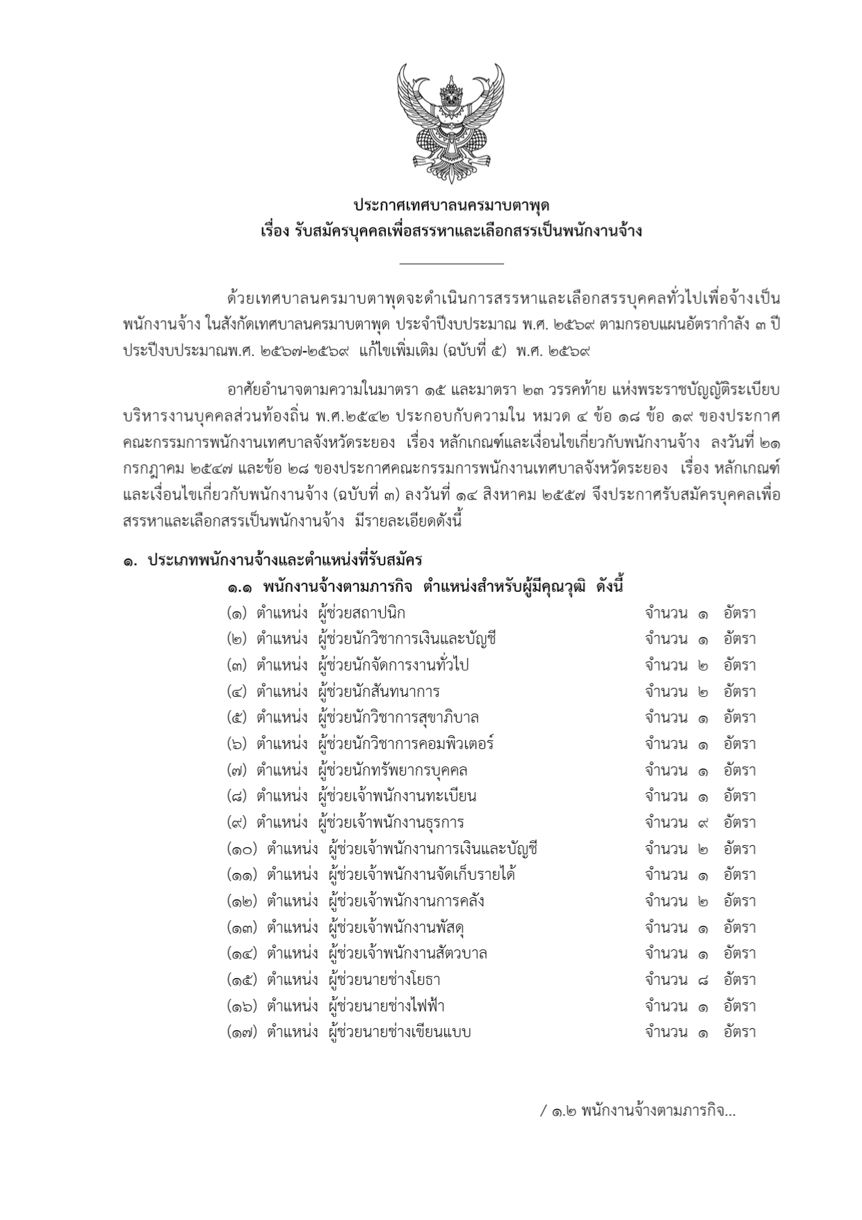 เทศบาลนครมาบตาพุด รับสมัครพนักงานจ้าง 102 อัตรา เงินเดือน 9,400 - 15,000 บาท ตั้งแต่วันที่ 3-17 เม.ย. 2569 ที่เกี่ยวข้อง มหาวิทยาลัยขอนแก่น รับสมัครนักวิชาการคอมพิวเตอร์ 1 อัตรา เงินเดือน 18,000 บาท ตั้งแต่บัดนี้ - 27 มี.ค. 2569 11 มี.ค. 2569 เวลา 19:35 น. 2,491 ศูนย์ส่งเสริมการเรียนรู้ระดับอําเภออมก๋อย รับสมัครพนักงานจ้างเหมาบริการ 1 อัตรา เงินเดือน 15,000 บาท ตั้งเเต่บัดนี้-25 มี.ค. 2569 22 มี.ค. 2569 เวลา 21:08 น. 852 มหาวิทยาลัยสงขลานครินทร์ วิทยาเขตปัตตานี รับสมัครบุคคลเป็นพนักงานเงินรายได้ 1 อัตรา เงินเดือน 15,000 บาท ตั้งแต่บัดนี้ - 31 มี.ค. 2569 3 มี.ค. 2569 เวลา 11:39 น. 2,077 โรงพยาบาลศรีเมืองใหม่ รับสมัครลูกจ้างชั่วคราว รายเดือน 1 อัตรา เงินเดือน 12,350 บาท ตั้งแต่วันที่ 20 - 26 มี.ค. 2569 12 มี.ค. 2569 เวลา 18:28 น. 1,414 โรงพยาบาลกบินทร์บุรี รับสมัครลูกจ้างชั่วคราวเงินนอก 10 อัตรา ตั้งแต่วันที่ 16 มี.ค. - 3 เม.ย. 2569 20 มี.ค. 2569 เวลา 22:36 น. 973 สำนักงานกองทุนพัฒนาสื่อปลอดภัยและสร้างสรรค์ รับสมัคร จ้างเหมาบริการรายบุคคล 1 อัตรา ตั้งแต่บัดนี้ถึง - 25 มี.ค. 2569 21 มี.ค. 2569 เวลา 22:13 น. 538 สํานักงานเขตจอมทอง รับสมัครลูกจ้างชั่วคราว 2 อัตรา เงินเดือน 8,690 บาท ตั้งแต่วันที่ 30มี.ค - 10 เม.ย. 2569 24 มี.ค. 2569 เวลา 15:03 น. 33 องค์การบริหารส่วนจังหวัดระนอง รับสมัครบุคคลเป็นพนักงานจ้าง 2 อัตรา เงินเดือน 9,400 - 15,000 บาท ตั้งแต่บัดนี้ - 27 มี.ค. 2569 24 มี.ค. 2569 เวลา 17:24 น. 26 โรงพยาบาลจิตเวชนครพนมราชนครินทร์ รับสมัครพนักงานกระทรวงสาธารณสุข 1 อัตรา เงินเดือน 8,690 บาท ตั้งแต่วันที่ 19-31 มี.ค.2569 18 มี.ค. 2569 เวลา 22:24 น. 469 โรงเรียนสามัคคีวิทยาคม รับสมัครลูกจ้างชั่วคราวเงินรายได้ 1 อัตรา เงินเดือน 12,000 บาท ตั้งแต่วันที่ 23-31 มี.ค. 2569 24 มี.ค. 2569 เวลา 15:26 น. 47 องค์การบริหารส่วนจังหวัดลำพูน รับสมัครพนักงานจ้างตามภารกิจ 4 อัตรา เงินเดือน 11,400 - 15,000 บาท ตั้งแต่บัดนี้ - 27 มี.ค. 2569 14 มี.ค. 2569 เวลา 17:14 น. 3,573 วิทยาลัยพัฒนาชุมชนเมือง มหาวิทยาลัยนวมินทราธิราช ขยายเวลารับสมัครบุคคลภายนอก 2 อัตรา เงินเดือน 13,000 บาท ตั้งแต่วันที่ 16-31 มี.ค. 2569 14 มี.ค. 2569 เวลา 10:23 น. 244