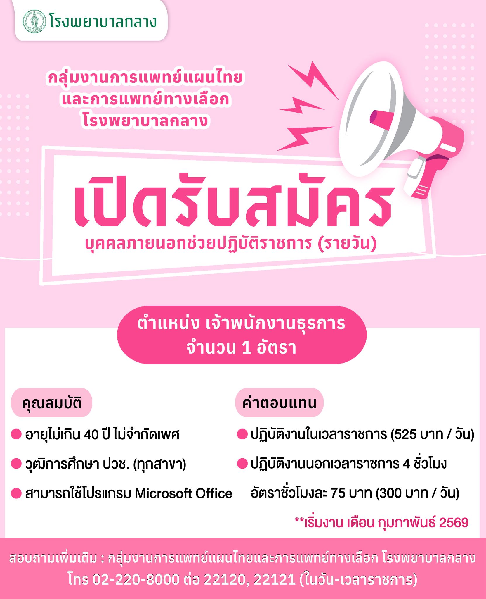 โรงพยาบาลกลาง กลุ่มงานการแพทย์แผนไทย รับสมัครเจ้าพนักงานธุรการ 1 อัตรา จ้างวันละ 525 บาท ตั้งแต่วันที่ แสดงความคิดเห็น : - กรุณาใช้คำพูดที่สุภาพและไม่ทำให้ผู้อื่นเสื่อมเสีย - ห้ามมิให้ผู้ใดโพดขายสินค้าเด็ดขาด - ข้อความโพสโดยสาธารณชน โปรดใช้วิจารณญาณในการอ่าน ที่เกี่ยวข้อง กรมท่าอากาศยาน รับสมัคร ตําแหน่งนักวิชาการพัสดุ 1 อัตรา เงินเดือน 15,000บาท ตั้งแต่วันที่ 12-27 ม.ค. 2569 14 ม.ค. 2569 เวลา 16:43 น. 560 สํานักศาลยุติธรรมประจําภาค 9 รับสมัคร เจ้าพนักงานศาลยุติธรรม 1 อัตรา เงินเดือน 21,780 บาท ตั้งแต่วันที่ 19 - 30 ม.ค. 2569 10 ม.ค. 2569 เวลา 11:42 น. 2,397 โรงพยาบาลสกลนคร รับสมัครพนักงานกระทรวงสาธารณสุขทั่วไป 15 อัตรา เงินเดือน18,000 - 21,000 บาท ตั้งแต่วันที่ 30 ม.ค. - 13 ก.พ. 2569 24 ม.ค. 2569 เวลา 14:07 น. 778 สํานักงานธนารักษ์พื้นที่กําแพงเพชร รับสมัครลูกจ้างชั่วคราว 1 อัตรา เงินเดือน 9,400 บาท ตั้งแต่วันที่ 19 ม.ค. - 6 ก.พ. 2569 26 ม.ค. 2569 เวลา 15:20 น. 101 โรงพยาบาลบําเหน็จณรงค์ รับสมัคร ลูกจ้างชั่วคราวรายเดือน 1 อัตรา เงินเดือน 14,750 บาท ตั้งแต่วันที่ 30 ธ.ค. 2568 - 7ม.ค. 2569 1 ม.ค. 2569 เวลา 12:12 น. 291 โรงพยาบาลพระนครศรีอยุธยา รับสมัครลูกจ้างชั่วคราว(รายวัน) 1 อัตรา ตั้งแต่วันที่ 13 ม.ค. - 13 ก.พ. 2569 9 ม.ค. 2569 เวลา 19:18 น. 2,083 เทศบาลตําบลน้ำน้อย รับสมัครบุคคลเพื่อเป็นพนักงานจ้าง 1 อัตรา เงินเดือน 9,400 - 11,500 บาท ตั้งแต่วันที่ 29 ม.ค. - 11 ก.พ. 2569 25 ม.ค. 2569 เวลา 18:06 น. 809 สํานักงานสาธารณสุขจังหวัดพะเยา รับสมัคร ลูกจ้างชั่วคราว (รายวัน) 2 อัตรา จ้างวันละ 521 - 782 บาท ตั้งแต่วันที่ 2-6 ก.พ. 2569 24 ม.ค. 2569 เวลา 19:54 น. 447 สถาบันส่งเสริมความปลอดภัย อาชีวอนามัย รับสมัคร นักวิเคราะห์นโยบายและแผนปฏิบัติการ 1 อัตรา เงินเดือน 18,500 บาท ตั้งแต่บัดนี้ถึง 2 ก.พ. 2569 17 ม.ค. 2569 เวลา 15:53 น. 538 ศูนย์วิจัยและพัฒนาประมงน้ำจืดสตูล รับสมัครพนักงานราชการทั่วไป 1 อัตรา เงินเดือน 21,780 บาท ตั้งแต่วันที่ 2 - 13 ก.พ. 2569 19 ม.ค. 2569 เวลา 18:39 น. 2,582 กรมทางหลวง รับสมัครบุคคลเป็นพนักงานราชการทั่วไป 49 อัตรา เงินเดือน 16,700 - 21,780 บาท ตั้งแต่วันที่ 28 ม.ค. - 5 ก.พ. 2569 14 ม.ค. 2569 เวลา 19:11 น. 14,555 กรมประมง รับสมัคร พนักงานราชการทั่วไป 6 อัตรา เงินเดือน 12,630 - 13,660 บาท ตั้งแต่วันที่ 26 ม.ค. - 3 ก.พ. 2569 25 ม.ค. 2569 เวลา 09:57 น. 551