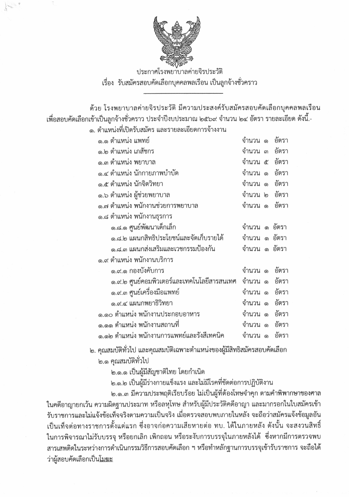 โรงพยาบาลค่ายจิรประวัติ รับสมัครลูกจ้างชั่วคราว 24 อัตรา เงินเดือน 10,520 - 31,000 บาท ตั้งแต่วันที่ 26 ก.พ. - 4 มี.ค. 2569 แสดงความคิดเห็น : - กรุณาใช้คำพูดที่สุภาพและไม่ทำให้ผู้อื่นเสื่อมเสีย - ห้ามมิให้ผู้ใดโพดขายสินค้าเด็ดขาด - ข้อความโพสโดยสาธารณชน โปรดใช้วิจารณญาณในการอ่าน ที่เกี่ยวข้อง กรมกําลังพลทหารบก รับสมัครพนักงานราชการ 6 อัตรา เงินเดือน 12,630 - 21,780 บาท ตั้งแต่วันที่ 9-20 มี.ค. 2569 3 มี.ค. 2569 เวลา 12:08 น. 3,745 สํานักงานป้องกันควบคุมโรคที่ 4จังหวัดสระบุรี รับสมัครพนักงานราชการทั่วไป 1 อัตรา เงินเดือน 21,780 บาท ตั้งแต่วันที่ 16-20 มี.ค. 2569 7 มี.ค. 2569 เวลา 11:40 น. 2,133 โรงพยาบาลน้ำพอง รับสมัครพนักงานกระทรวงสาธารณสุขทั่วไป 2 อัตรา เงินเดือน 18,000 บาท ตั้งแต่วันที่ 12 - 18 มี.ค. 2569 11 มี.ค. 2569 เวลา 18:58 น. 1,403 มหาวิทยาลัยสงขลานครินทร์ วิทยาเขตปัตตานี รับสมัครบุคคลเป็นพนักงานเงินรายได้ 1 อัตรา เงินเดือน 15,000 บาท ตั้งแต่บัดนี้ - 31 มี.ค. 2569 3 มี.ค. 2569 เวลา 11:39 น. 1,530 ส่วนบริหารทั่วไป สํานักงานชลประทานที่ 7 รับสมัครพนักงานทั่วไป 1 อัตรา จ้างวันละ 377.85 บาท ตั้งแต่วันที่ 16-27 มี.ค. 2569 10 มี.ค. 2569 เวลา 20:57 น. 1,525 อําเภอม่วงสามสิบ รับสมัครลูกจ้างเหมาบริการ 1 อัตรา เงินเดือน 9,000 บาท ตั้งแต่วันที่ 18-20 มี.ค. 2569 13 มี.ค. 2569 เวลา 19:30 น. 189 สํานักงานสรรพากรพื้นที่อุตรดิตถ์ รับสมัครลูกจ้างชั่วคราว 1 อัตรา เงินเดือน 18,150 บาท ตั้งแต่วันที่ 16 - 27 มี.ค. 2569 8 มี.ค. 2569 เวลา 14:30 น. 1,298 โรงเรียนราชประชานุเคราะห์ 48จังหวัดจันทบุรี รับสมัคร จ้างเหมาบริการ 1 อัตรา เงินเดือน 9,000 บาท ตั้งแต่วันที่ 11-17 มี.ค. 2569 11 มี.ค. 2569 เวลา 22:19 น. 396 สถาบันสุขภาพจิตเด็กและวัยรุ่นราชนครินทร์ รับสมัครพนักงานกระทรวงสาธารณสุขทั่วไป 3 อัตรา เงินเดือน 11,500 - 18,000 บาท ตั้งแต่วันที่ 17 มี.ค. - 16 เม.ย. 2569 13 มี.ค. 2569 เวลา 21:12 น. 787 วิทยาลัยเทคนิคอุบลราชธานี รับสมัครพนักงานราชการทั่วไป 1 อัตรา เงินเดือน21,780 บาท ตั้งแต่วันที่ 16-20 มี.ค. 2569 12 มี.ค. 2569 เวลา 21:02 น. 2,358 มหาวิทยาลัยทักษิณ รับสมัครบุคคลเข้าสอบเป็นลูกจ้างมหาวิทยาลัย 1 อัตรา เงินเดือน 20,480 บาท ตั้งแต่บัดนี้ - 26 มี.ค. 2569 9 มี.ค. 2569 เวลา 19:44 น. 2,921 โรงเรียนศรีภิรมย์พิทยา รับสมัครครูอัตราจ้าง 1 อัตรา เงินเดือน 7,000 บาท ตั้งแต่วันที่ 16-24 มี.ค. 2569 14 มี.ค. 2569 เวลา 10:00 น. 235