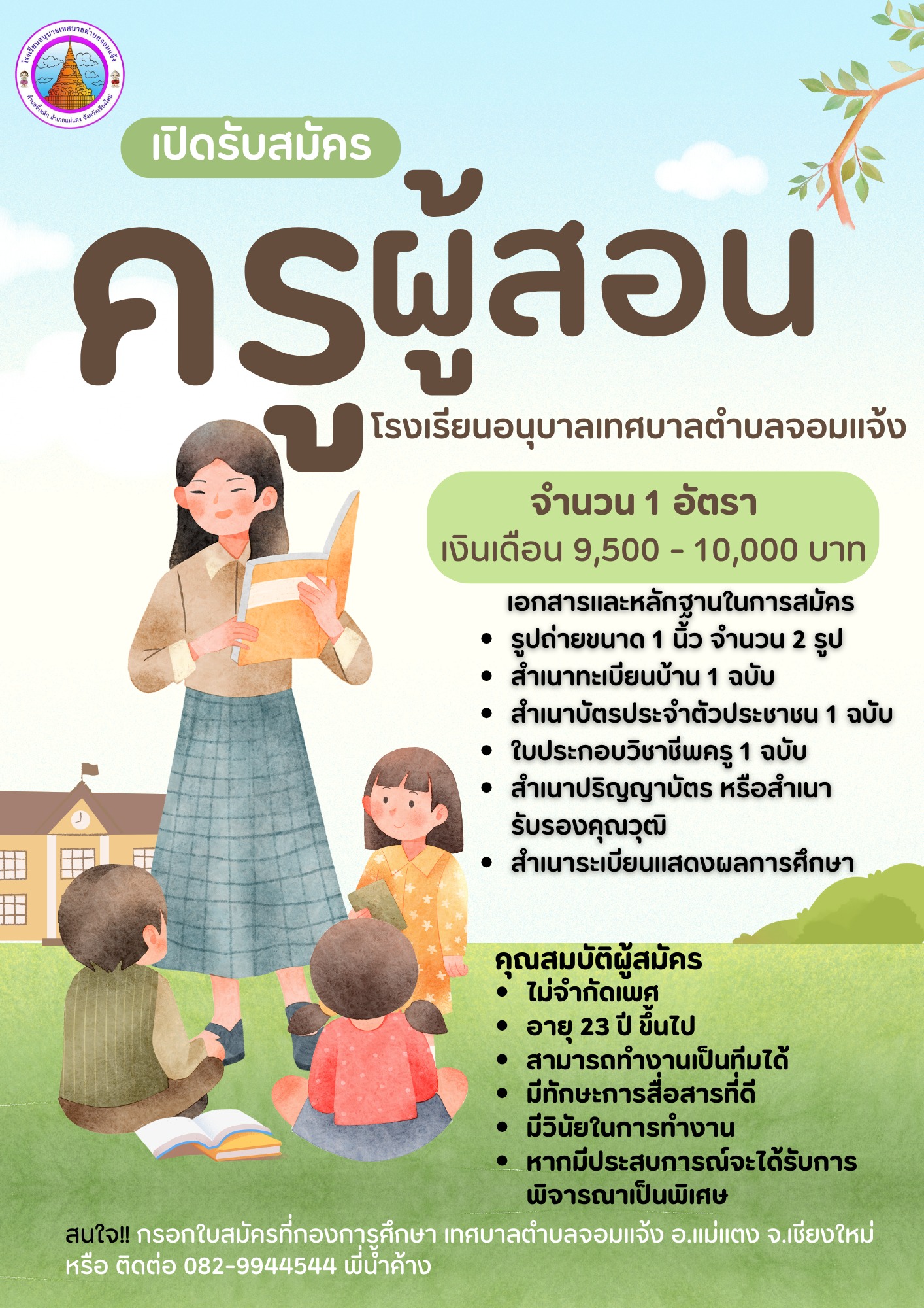 โรงเรียนอนุบาลเทศบาลตําบลจอมแจ้ง รับสมัคร ครูอัตราจ้าง 1 อัตรา เงินเดือน 9,500 - 10,000 บาท ตั้งแต่บัดนี้เป็นต้นไป แสดงความคิดเห็น : - กรุณาใช้คำพูดที่สุภาพและไม่ทำให้ผู้อื่นเสื่อมเสีย - ห้ามมิให้ผู้ใดโพดขายสินค้าเด็ดขาด - ข้อความโพสโดยสาธารณชน โปรดใช้วิจารณญาณในการอ่าน ที่เกี่ยวข้อง โรงพยาบาลเกาะสมุย รับสมัครบุคคลเพื่อคัดเลือกเข้าปฏิบัติงาน 1 อัตรา เงินเดือน 15,000 บาท ตั้งแต่วันที่ 8 - 16 ม.ค. 2569 1 ม.ค. 2569 เวลา 17:51 น. 981 เทศบาลตําบลสลกบาตร รับสมัคร พนักงานจ้าง 6 อัตรา เงินเดือน 9,000 - 9,400 บาท ตั้งแต่วันที่ 14-23 ม.ค. 2569 1 ม.ค. 2569 เวลา 11:08 น. 279 โรงพยาบาลจุฬาลงกรณ์ รับสมัครบุคลากรสัญญาจ้าง ตำแหน่งผู้จัดการ 1 อัตรา เงินเดือน 25,000 บาท ตั้งแต่บัดนี้ - 21 ม.ค. 2569 7 ม.ค. 2569 เวลา 09:56 น. 1,335 สถาบันพยาธิวิทยา ศูนย์อํานวยการแพทย์พระมงกุฎเกล้า รับสมัคร ลูกจ้างชั่วคราว 1 อัตรา เงินเดือน 10,500 บาท ตั้งแต่บัดนี้ถึง 19 ม.ค. 2569 24 ธ.ค. 2568 เวลา 12:01 น. 490 โรงพยาบาลส่งเสริมสุขภาพตำบลบ้านท่าสะอาด รับสมัคร ลูกจ้างชั่วคราว(รายเดือน) 3 อัตรา เงินเดือน 9,030- 15,490 บาท ตั้งแต่วันที่ 12-23 ม.ค. 2569 14 ม.ค. 2569 เวลา 15:24 น. 170 คณะเศรษฐศาสตร์ จุฬาลงกรณ์มหาวิทยาลัย รับสมัครพนักงานมหาวิทยาลัย 2 อัตรา เงินเดือน 41,000 - 56,400 บาท ตั้งแต่บัดนี้ - 19 ม.ค. 2569 26 ธ.ค. 2568 เวลา 15:50 น. 2,514 วิทยาลัยอาชีวศีกษาเพชรบุรี รับสมัคร พนักงานราชการทั่วไป 1 อัตรา เงินเดือน 21,780 บาท ตั้งแต่วันที่ 12-19 ม.ค. 2569 3 ม.ค. 2569 เวลา 12:08 น. 637 โรงพยาบาลโกสัมพีนคร รับสมัคร ลูกจ้างชั่วคราว (รายวัน) 2 อัตรา จ้างวันละ 600- 750 บาท ตั้งแต่วันที่ 19 ธ.ค. 2568 - 16 ม.ค. 2569 24 ธ.ค. 2568 เวลา 21:55 น. 502 สำนักงานปลัดกระทรวงพลังงาน รับสมัครบุคคลเข้ารับราชการ 6 อัตรา เงินเดือน 13,920 - 19,970 บาท ตั้งแต่วันที่ 12 - 31 ม.ค. 2569 22 ธ.ค. 2568 เวลา 18:12 น. 5,577 หน่วยบัญชาการทหารพัฒนา รับสมัครบุคคลเป็นพนักงานราชการ 20 อัตรา เงินเดือน 12,630 - 16,700 บาท ตั้งแต่บัดนี้ - 16 ม.ค. 2569 13 ม.ค. 2569 เวลา 18:20 น. 2,108 สํานักงานเขตพื้นที่การศึกษาประถมศึกษาหนองบัวลําภู เขต 2 รับสมัคร พนักงานราชการทั่วไป 1 อัตรา เงินเดือน 21,780 บาท ตั้งแต่วันที่ 13-19 ม.ค. 2569 9 ม.ค. 2569 เวลา 12:57 น. 4,171 กรมอู่ทหารเรือ รับสมัครบุคคลพลเรือนเป็นพนักงานราชการ 39 อัตรา ตั้งแต่วันที่ 20 - 26 ม.ค. 2569 14 ม.ค. 2569 เวลา 18:58 น. 1,017